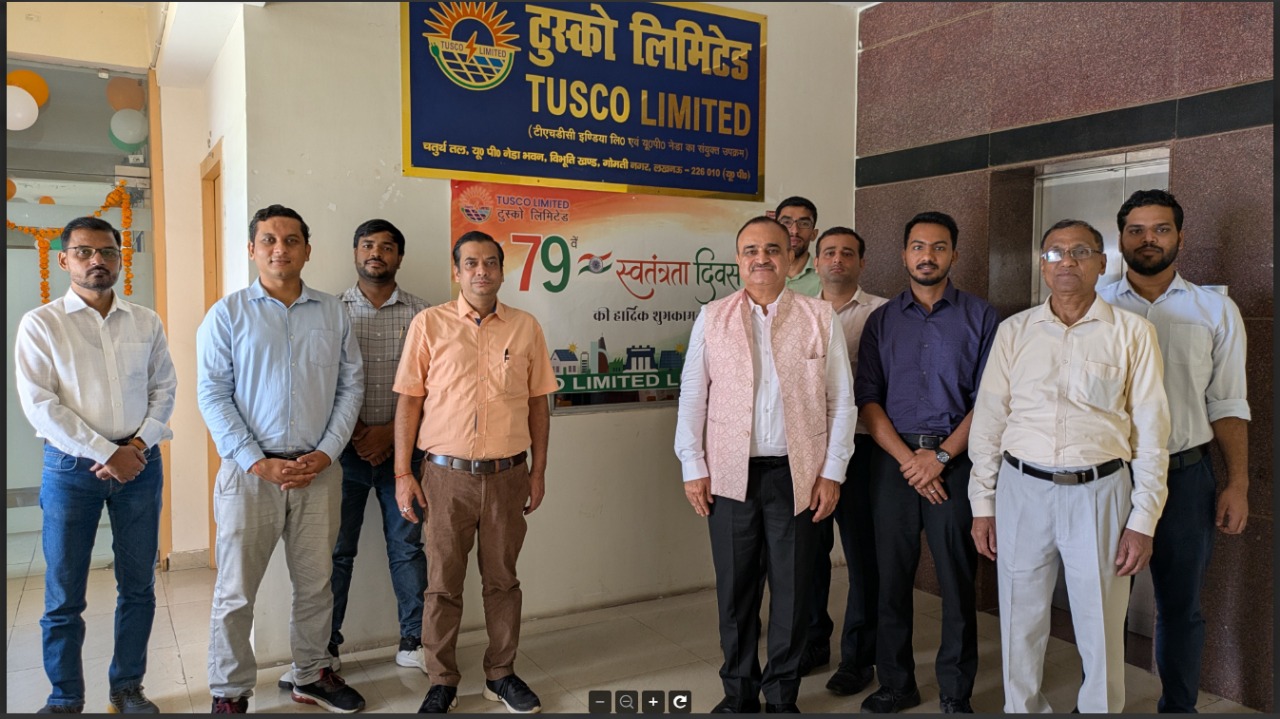 TUSCO Limited proudly celebrated the 79th Independence Day with great enthusiasm and patriotic spirit at its offices and project sites in Lucknow, Jhansi, Lalitpur, and Chitrakoot. The celebrations commenced with the unfurling of the National Flag, followed by inspiring addresses that reflected on the nation’s progress and TUSCO’s commitment to building a greener and stronger India through renewable energy. Employees also joined the live streaming of the Independence Day celebrations of THDC India Limited, which included the address of CMD Shri R.K. Vishnoi.